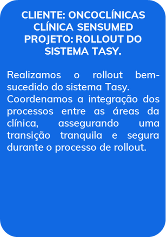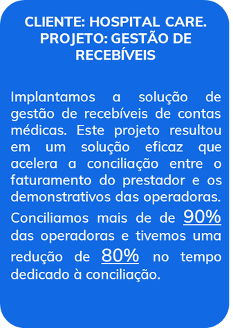 Sou especialista em processos, regras comerciais, cadastros, faturamento e financeiro na área da saúde. Além disso, possuo um amplo conhecimento em processos assistenciais hospitalares, garantindo uma abordagem completa e integrada para atender às necessidades dos clientes.